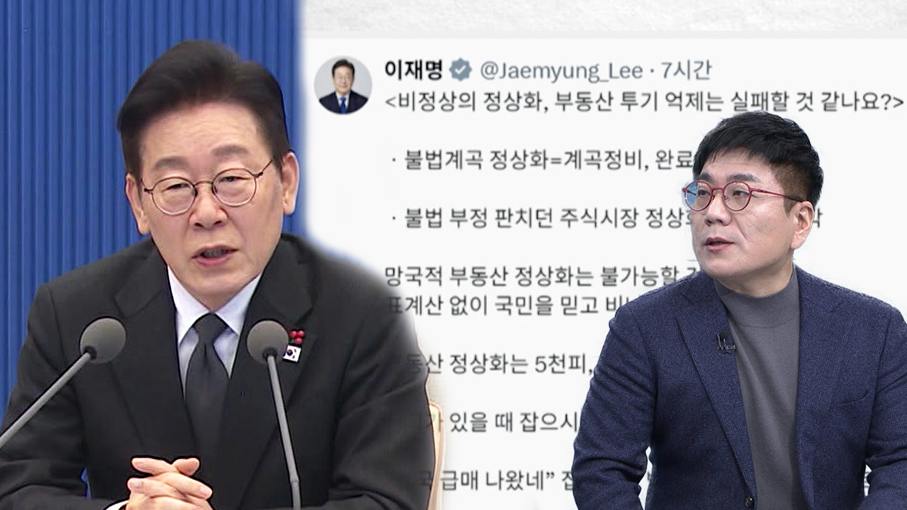 ▶ 윤태곤 / 더모아 정치분석실장 : 집값이 꿈틀거리기 마련이죠. 그러니까 대통령이 좀 선제적으로 나서야 되겠다. 그리고 저는 이제 그런 생각을 갖고 있는데 대통령의 지지율이라는 것은 저축이랑 비슷하거든요. 모아서 쓰기 위해서 있는 겁니다. 만약 대통령이 지금도 이제 ‘집 강력하게 잡겠다, 세금 올릴 수 있다’ 이러니까 꿈틀거리지 않습니까? 지지율이 높으니까 ‘내 저축을 조금 까먹어도 된다.’ 이렇게 생각을 해서 지금 강하게 이야기를 하고 있는 것 같고 저는 대통령이 강한 의지를 표현하는 것은 문제없다고 생각합니다. 긍정적이라고 생각하는데 문제는 너무 구체적인 부분에 대해서 중복적으로 말씀을 하신다면 그것은 좋지가 않을 수 있죠. 예컨대 지금 저희가 별로 여고 야고 특히 야당이 왜 언급 안 하는지 모르겠습니다마는 백해룡 경정 같은 경우에 대통령이 너무 구체적으로 강하게 말해가지고 지금 여기에 대해서는 그냥 언급을 안 하고 있는 거지 않습니까.