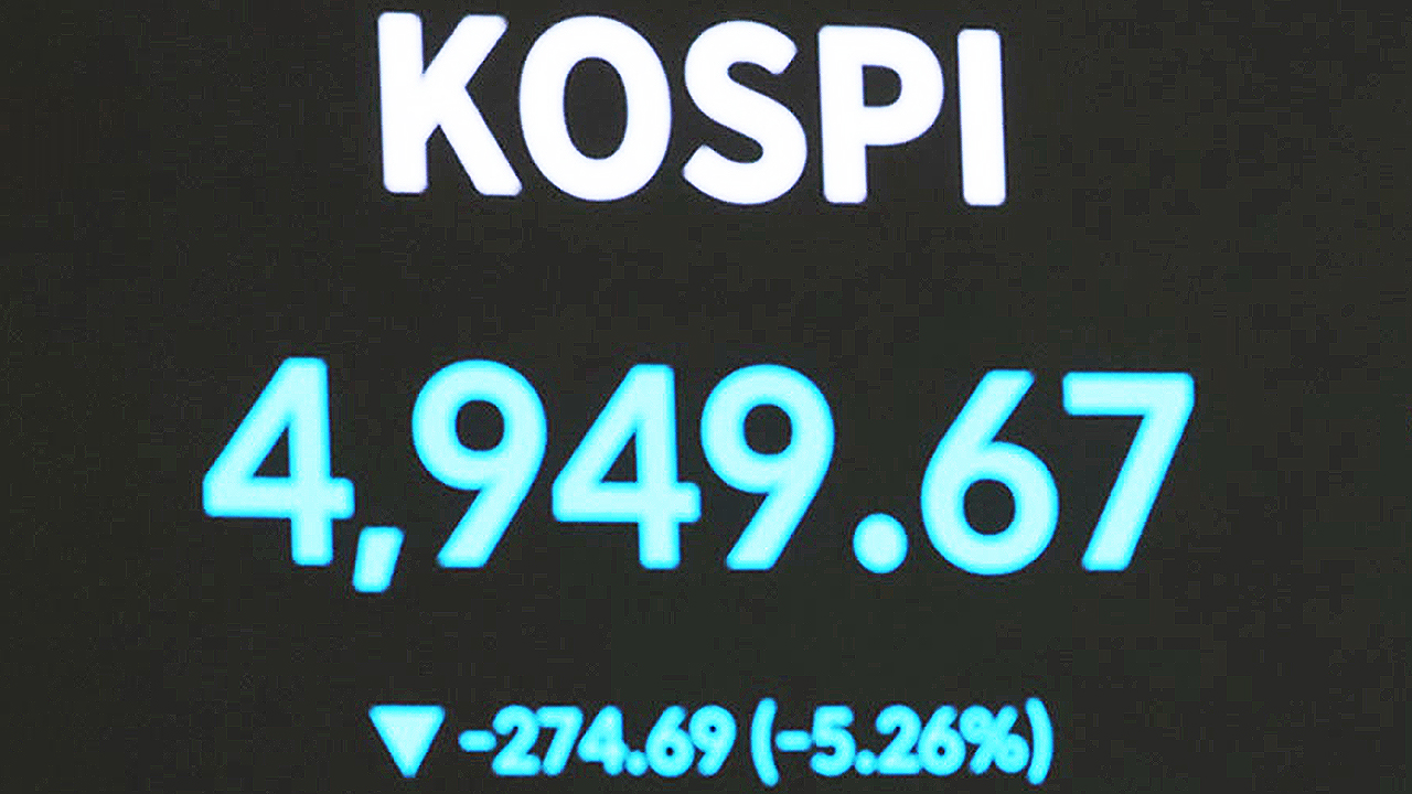 코스피가 오늘(3일) 5% 넘게 급락하며 4천949로 장을 마감했습니다.