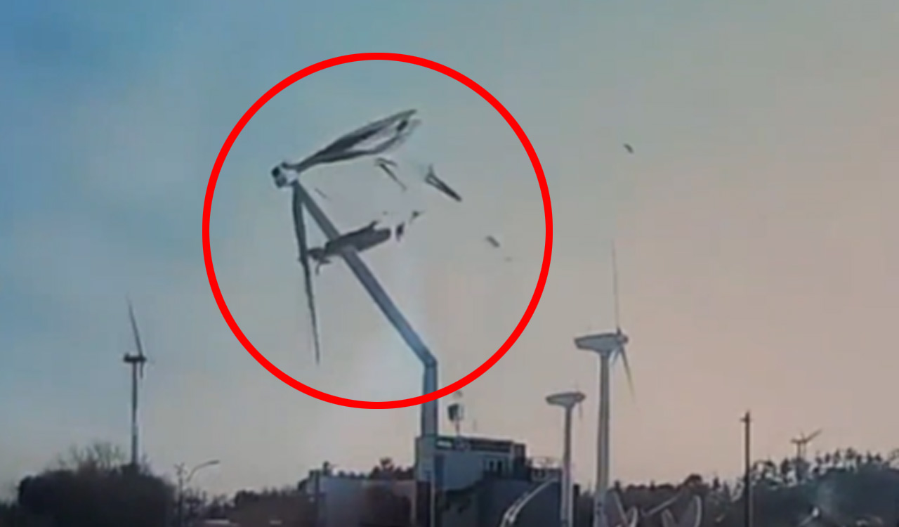 발전기의 날개는 마치 종잇장이 찢어지듯 산산조각 나 도로에 떨어졌습니다.