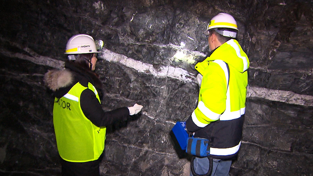 [특정 파장에서 텅스텐이 반응해서 푸른색과 하얀색 빛을 내는 겁니다. 이 맥은 시추를 통해서 이미 파악하고 있는 거고요.]