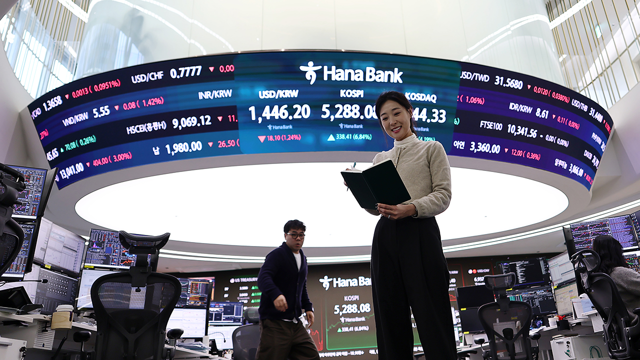 ▲ 코스피가 3일 7% 가까이 급등해 종가 기준 사상 최고치를 경신한 3일 서울 하나은행 본점 딜링룸에서 딜러들이 업무를 보고 있다.