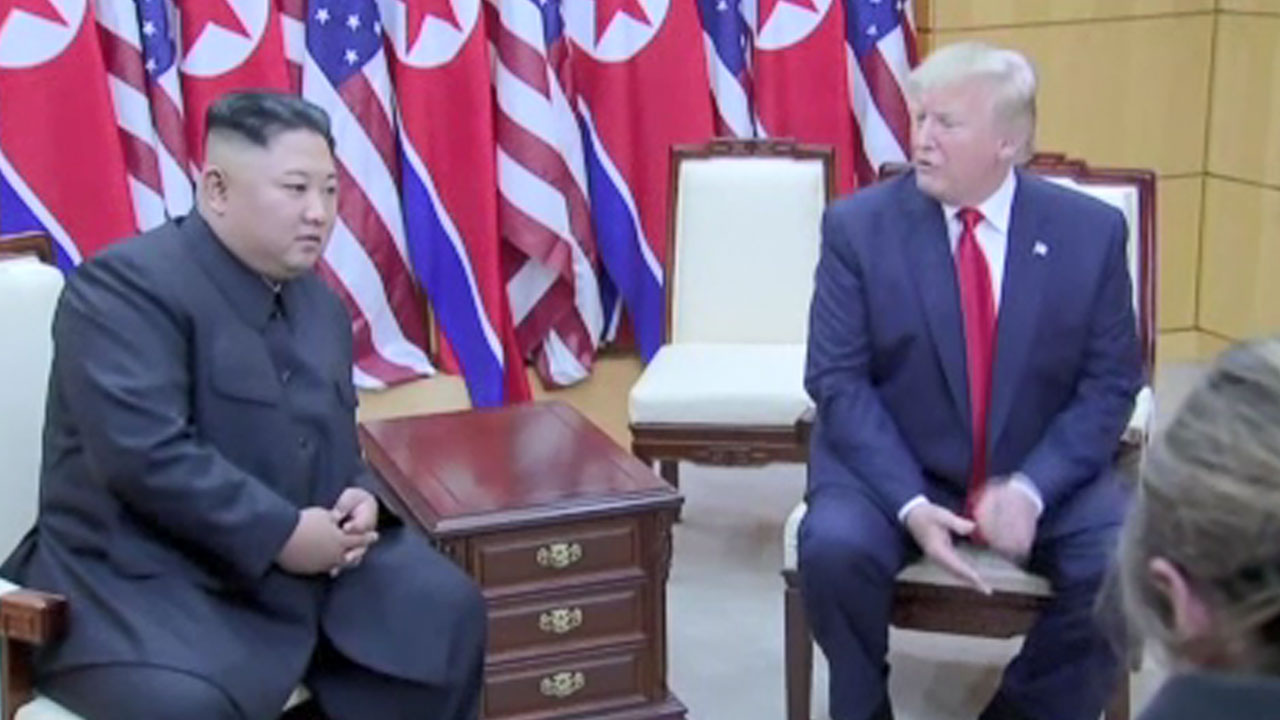 ▲ 2019년 6월 30일 판문점 자유의집에서 개최된 북미 정상 회동 장면