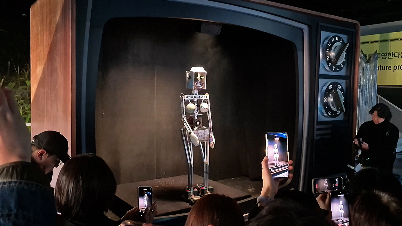 권병준 작가가 백남준이 1965년 펼친 역사적 퍼포먼스 '로봇 오페라'를 바탕으로 만든 로봇 마당극의 주인공으로 부활했습니다.