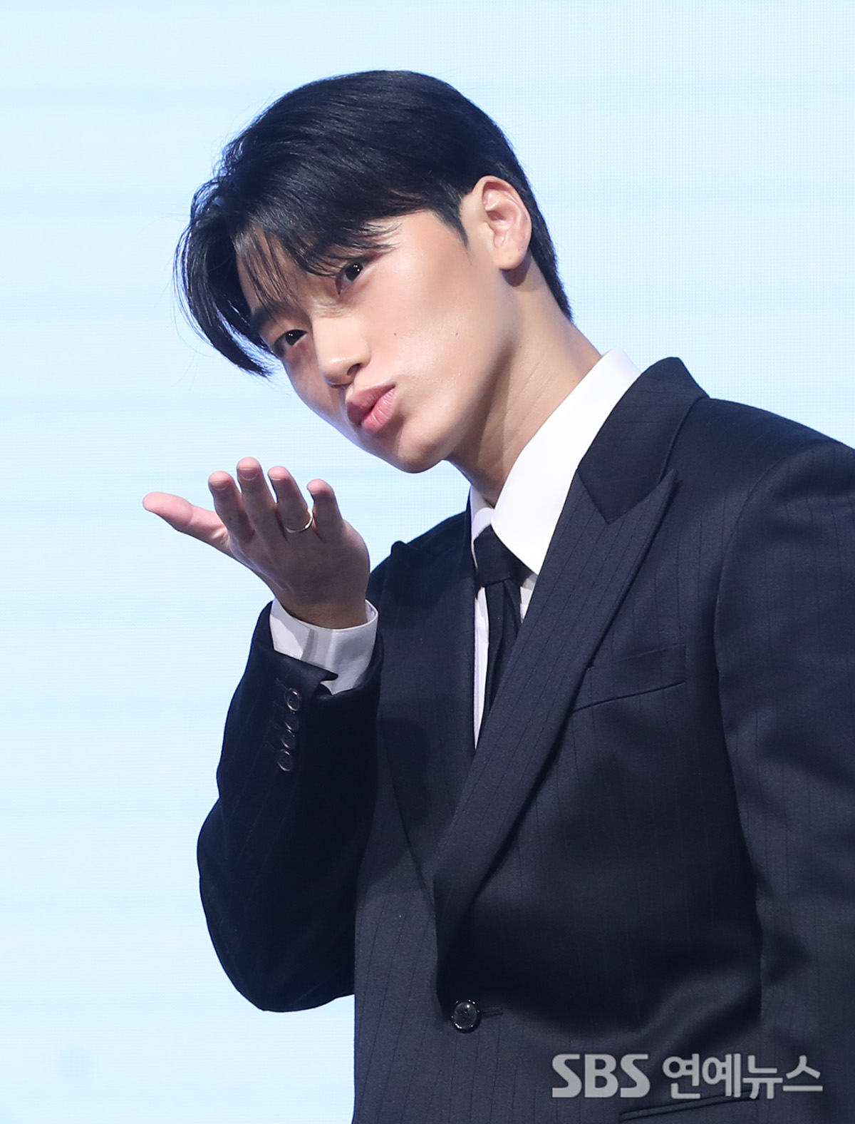ATEEZ's SAN poses for photos at a press conference celebrating the release of the group’s 13th mini album, "GOLDEN HOUR : Part.4," held at Fairmont Ambassador Seoul in Yeongdeungpo-gu, Seoul, on the afternoon of Feb. 5.
