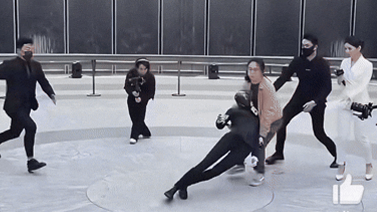 곁에 있던 관계자가 아이언을 붙잡으려 했으나 막지 못했습니다.