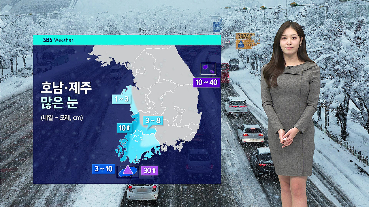 내일과 모레는 호남과 제주를 중심으로 많은 눈이 예보되어 있습니다.