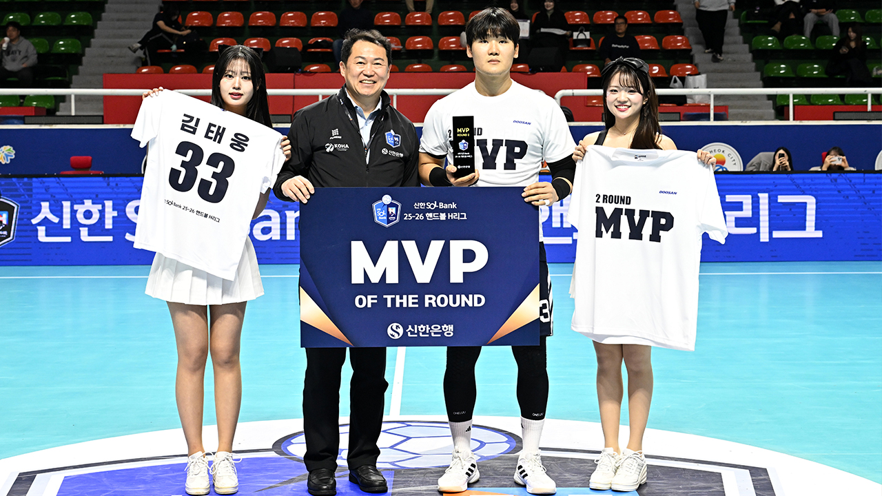 두산 김태웅이 핸드볼 H리그 남자부 2라운드 최우수선수(MVP)가 됐습니다.