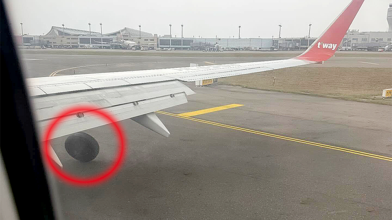 ▲ 8일 제주국제공항에서 출발해 타이완으로 향하던 여객기가 착륙 중에 타이어가 이탈하는 사고가 발생했다.
