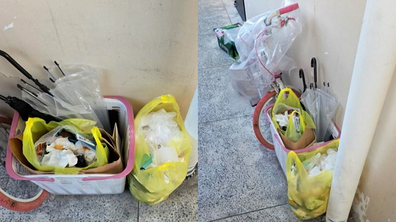 사진에는 현관문 앞 복도에 꽉 찬 쓰레기 봉투와 온갖 물건들이 놓여 있는 모습이 담겼는데요.
