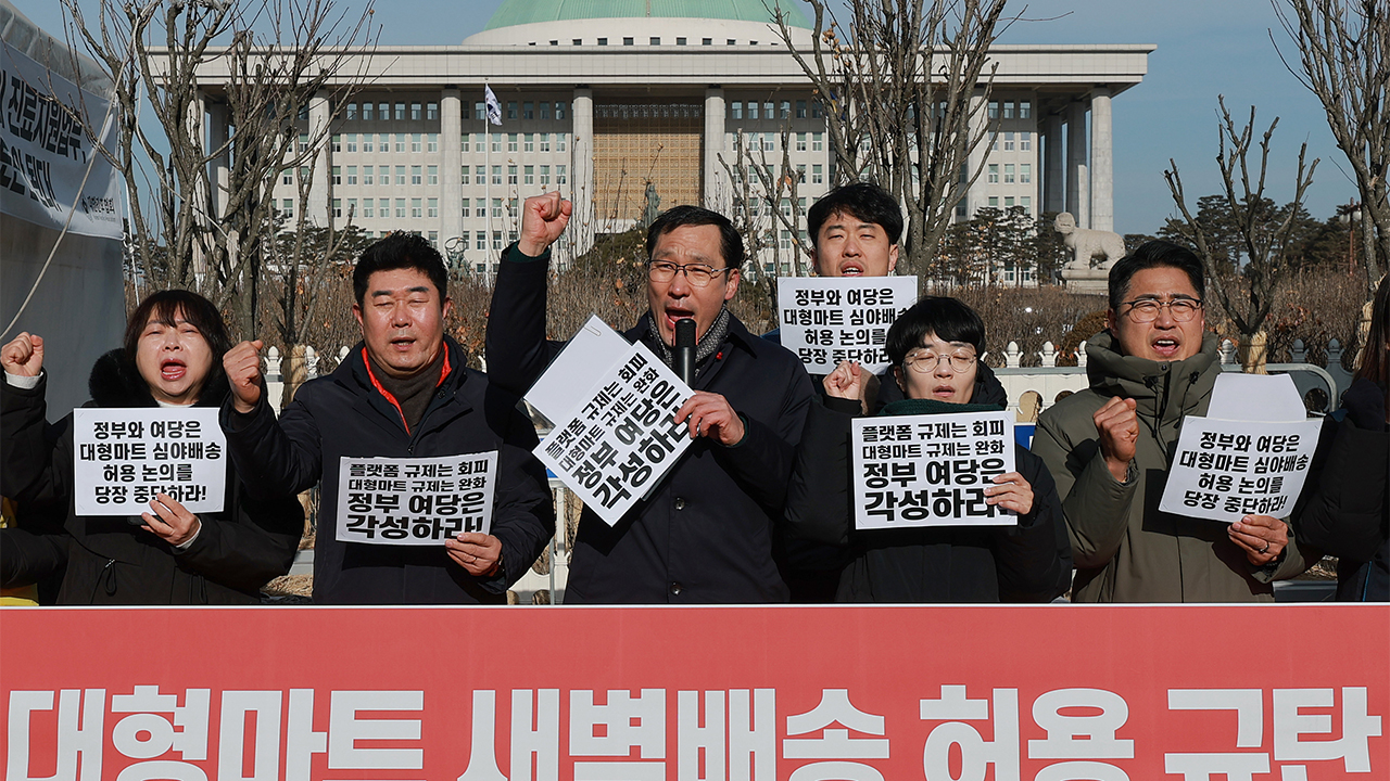 한상총련은 "소상공인·자영업자의 생존권과 노동자의 생명권은 유통 재벌의 수익 증대를 위해 거래될 수 없다"며 대형마트 심야 배송 허용 추진을 중단하고, 온라인 플랫폼 독과점 방지와 공정거래 입법에 나설 것을 촉구했습니다.