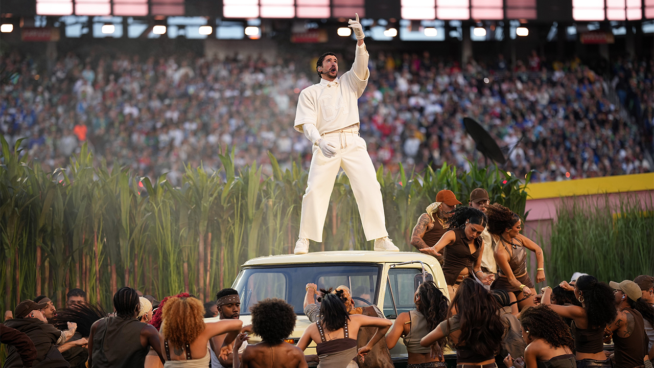 하프타임쇼의 백미는 공연 막판 배드 버니가 중남미 각국의 국기 퍼레이드와 함께 앞으로 걸어 나오면서 중남미 각국의 이름을 하나씩 나열하다가 푸에르토리코, 미국, 캐나다를 마지막으로 외친 뒤 "함께할 때 우리는 아메리카"(Together, We Are America)라고 적힌 풋볼 공을 강하게 던지는 장면이었습니다.
