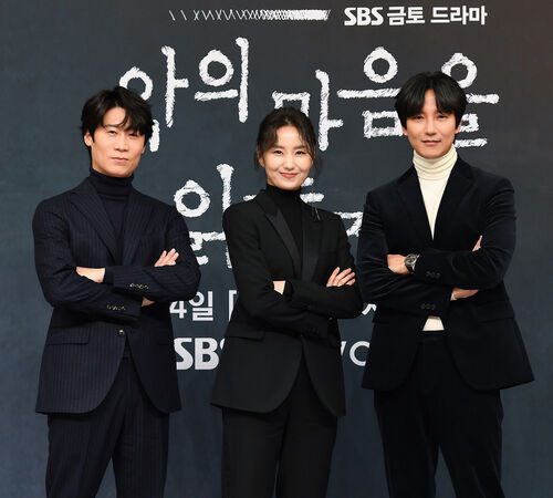 From left, Jin Sun-kyu, Kim Sojin, and Kim Nam-gil pose during the online press conference for SBS’s new Friday-Saturday drama “Through the Darkness,” held at SBS in Mok-dong, Yangcheon-gu, Seoul, on the afternoon of the 11th.Copyright Ⓒ SBS. All rights reserved. 무단 전재, 재배포 및 AI학습 이용 금지