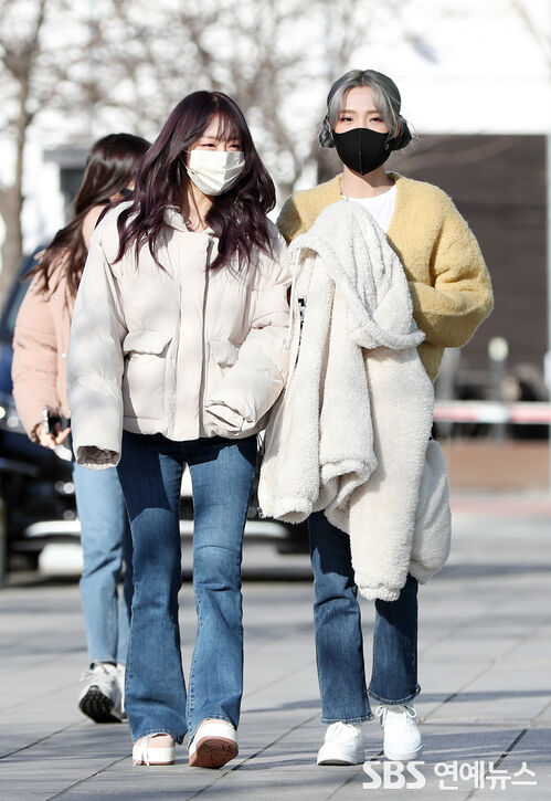 WJSN CHOCOME’s SOOBIN (left) and YEOREUM head into the SBS building in Mok-dong, Yangcheon-gu, Seoul, on the afternoon of the 13th for their appearance on SBS PowerFM’s Cultwo Show.Copyright Ⓒ SBS. All rights reserved. 무단 전재, 재배포 및 AI학습 이용 금지