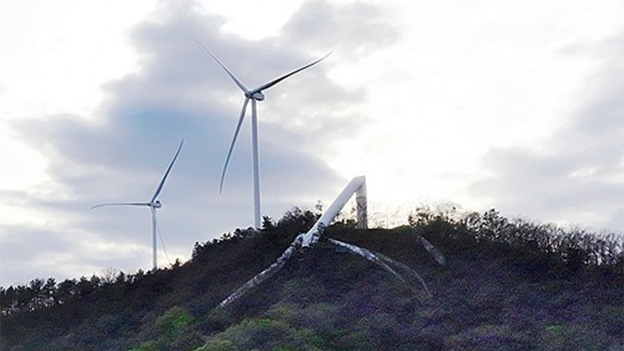 높이 127m 크기 풍력발전기 타워가 쓰러지듯 휘어졌으나 인명 피해는 발생하지 않았습니다.