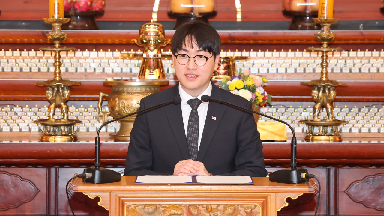 부회장을 맡은 강 대변인은 "국민 한 분 한 분을 부처님처럼 섬기며 낮은 곳을 먼저 살피는 겸손한 공직자가 되겠다"며 "부처님의 자비와 지혜를 담은 행정으로 국민을 위한 희망의 등불이 되겠다"는 내용의 발원문을 낭독했습니다.