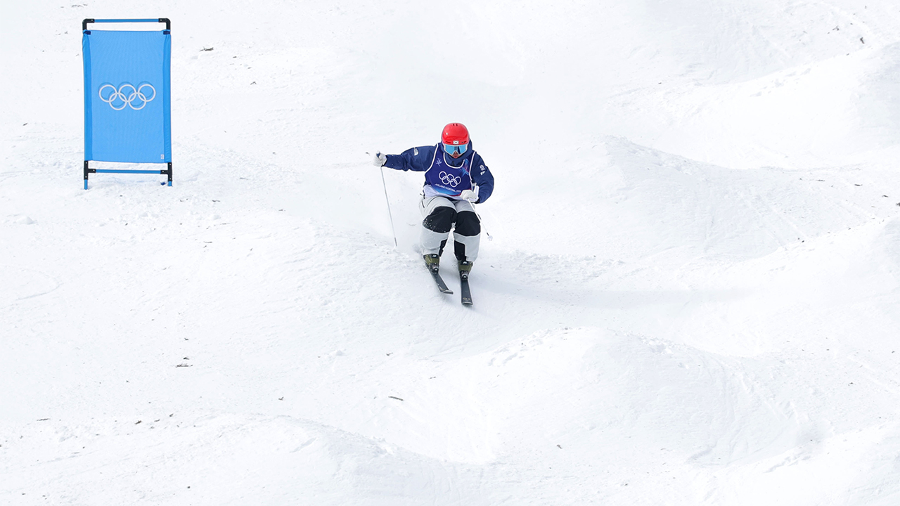 모굴은 스키를 타고 1m 남짓한 높이의 눈 둔덕(모굴)으로 뒤덮인 코스를 빠르게 내려오고, 점프대에서 날아올라 공중 연기도 펼치는 종목입니다. 턴과 공중 동작, 시간이 성적에 반영됩니다.
