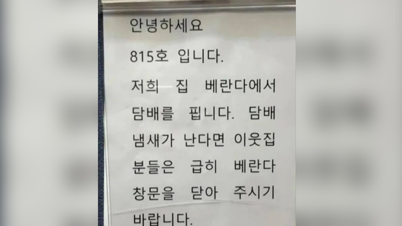 그런데요, 아파트 베란다에서 담배를 피우는 주민이 이웃들의 항의 민원에 '창문을 닫아라'라고 공지문을 붙여 논란이 일고 있습니다.