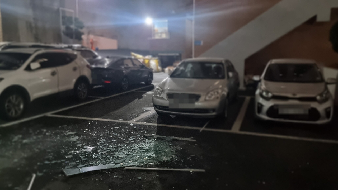 아파트 발코니에서 휴대용 가스버너가 폭발한 여파로 유리창이 파손돼 지상에 있던 차량 여러 대가 파손됐습니다.