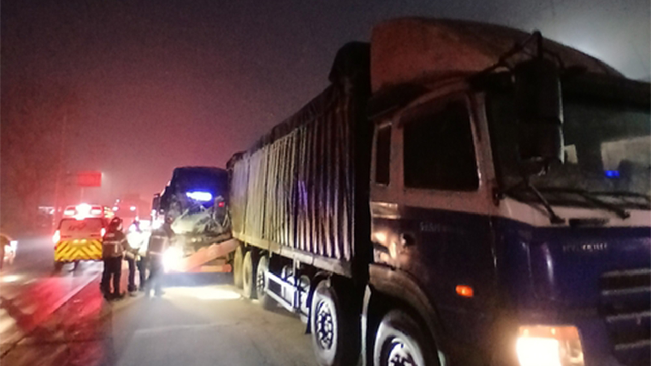 이 사고로 통근버스 운전자 A(50대) 씨가 숨지고 버스에 탄 회사원 9명과 화물차 운전자가 다쳤습니다.