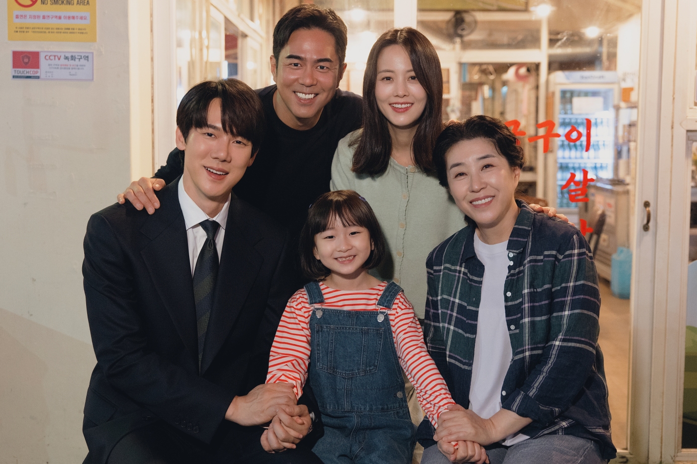 엄마 박경화(김미경 분)가 운영하는 '두근두근 정육식당' 앞에 모인 신이랑 패밀리. 조카 윤다봉(이아린 분)의 손을 꼭 잡은 신이랑과 박경화, 그리고 매형 윤봉수와 누나 신사랑(손여은 분)까지, 한 프레임에 담긴 풍경은 화려하진 않지만 단단하고 따뜻하다. 서로를 자연스럽게 챙기고 기대는 이들의 분위기에서는 오랜 시간 함께 버텨온 가족만의 정이 고스란히 전해진다.