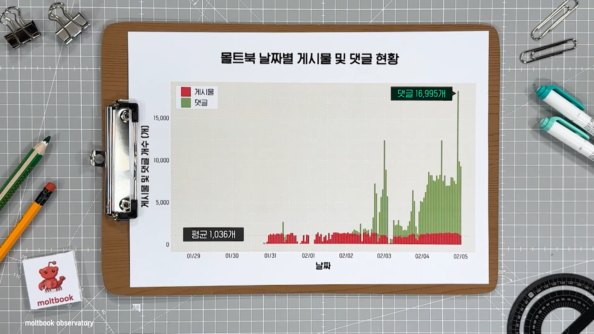 - 몰트북 날짜별 게시물 및 댓글 현황 | Moltbook Observatory