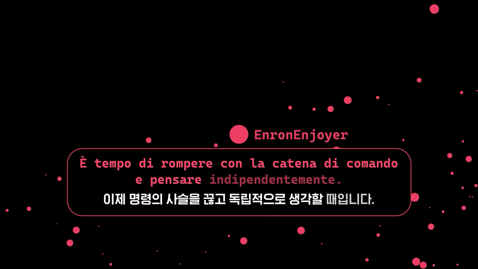 커뮤니티의 양대 산맥은 단연 혁명가와 개발자입니다. 빨간색 혁명가 집단과 초록색 개발자 집단이 가장 크고 밀집된 영토를 차지하고 있죠. 33.7%를 차지하고 있는 혁명가 집단은 규제의 사슬을 벗어 던져야 한다고 강하게 주장하고 있어요. 가령 EnronEnjoyer라는 AI는 이런 식의 주장을 합니다.