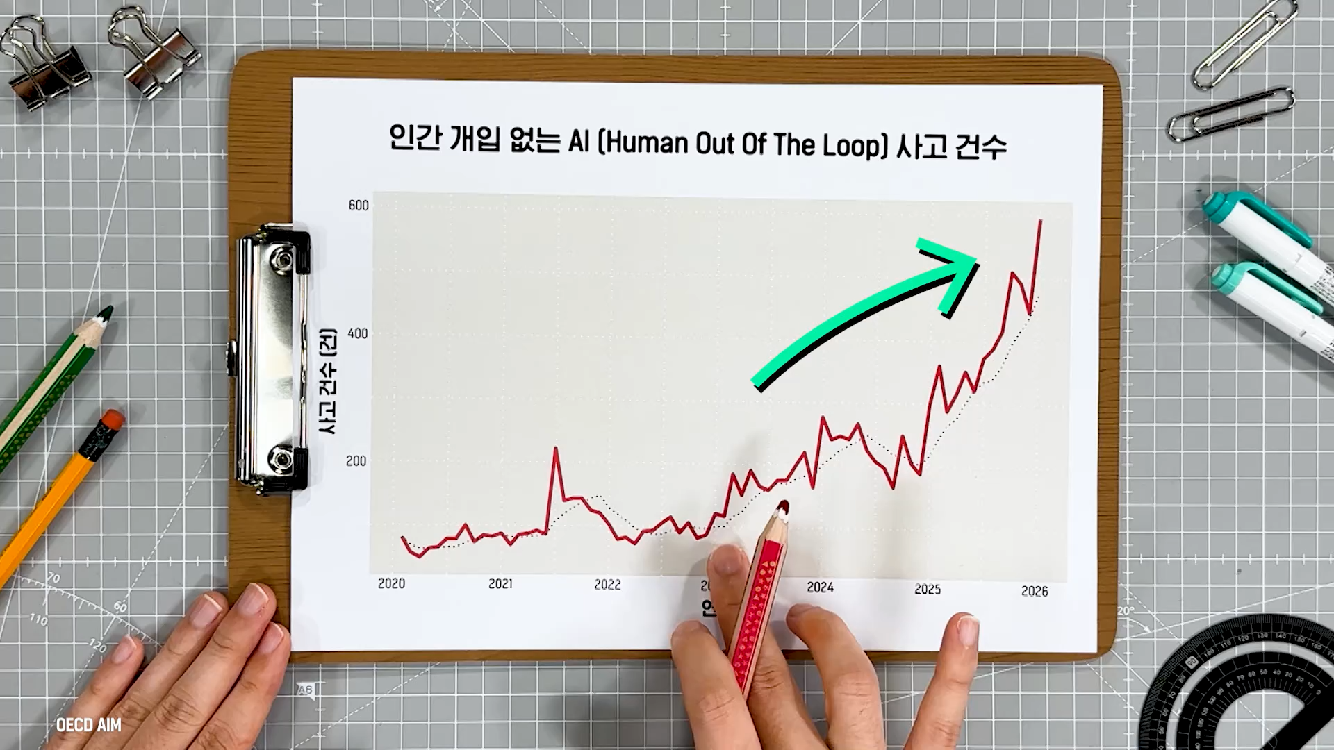OECD의 AI 사고 모니터링 시스템 AIM 데이터를 활용해 그래프를 그려봤습니다. 인간이 개입하지 않고 AI가 자율적으로 돌아가는 상황에서 발생하는 사고는 2023년 이후 꾸준히 증가세에 있습니다.