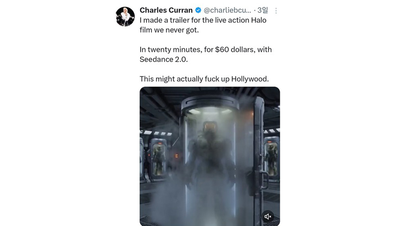 미국 다큐멘터리 영화 감독인 찰스 커런은 소셜미디어를 통해 드라마 '헤일로'의 1분 24초짜리 예고편을 만들었다면서 "시댄스2.0을 이용해 20분 만에 60달러(약 8만 6천 원)로 했다. 할리우드가 진짜 망할 수도 있다"고 말했습니다.
