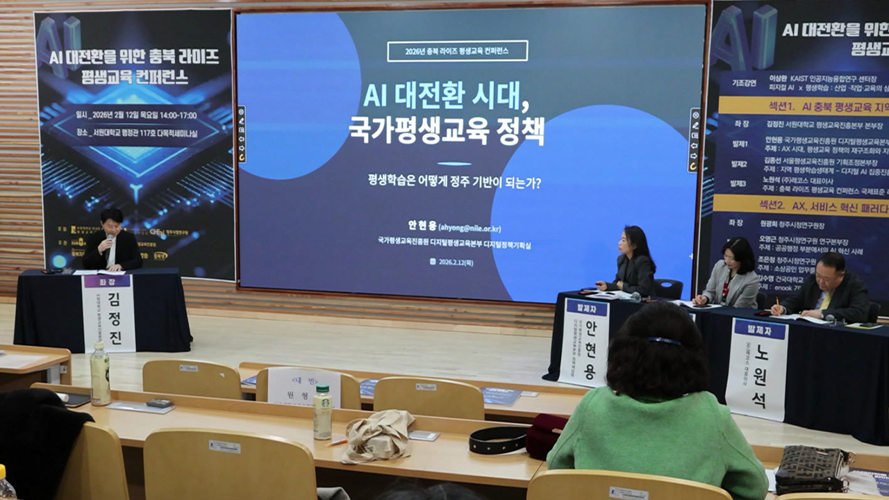 전 세계적으로 인공지능 경쟁이 치열해지면서 정부도 AI 교육 확대에 나서고 있습니다. 특정 계층이 아닌 모두를 위한 평생교육 체계가 강조되는 가운데, 충북 지역의 대응 전략을 논의하는 자리가 마련됐습니다.