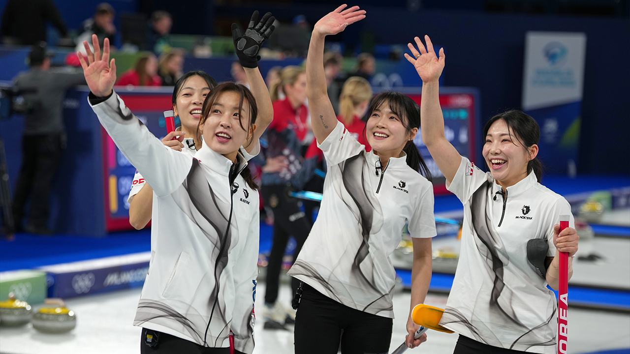 스킵 김은지, 서드 김민지, 세컨드 김수지, 리드 설예은, 핍스 설예지로 구성된 한국 대표팀은 오늘(14일, 한국시간) 이탈리아 코르티나담페초의 코르티나 컬링 올림픽 스타디움에서 열린 라운드로빈 3차전에서 영국에 9대 3으로 승리했습니다.