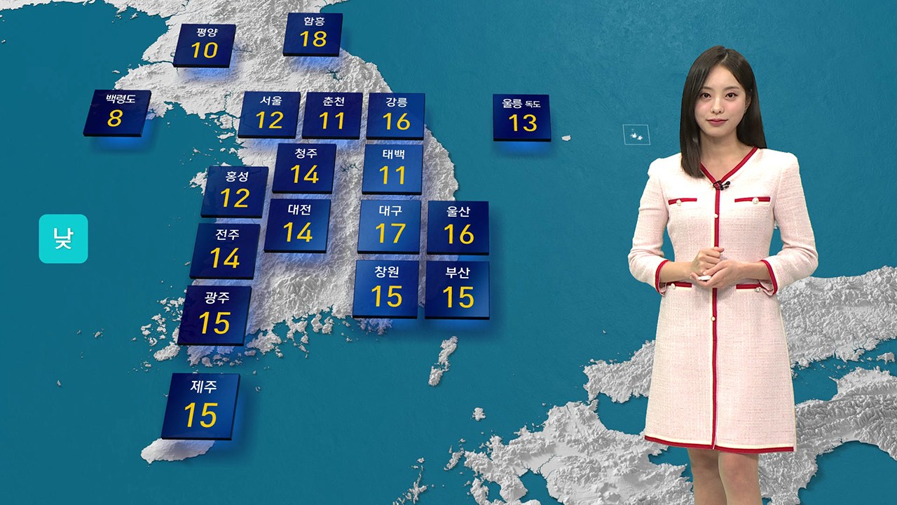 자세한 낮 기온 보시면 서울 12도, 강릉 16도, 대구 17도로 온화하겠습니다.