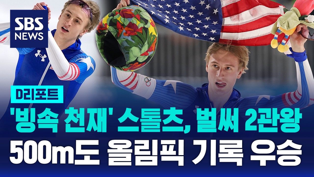 첫 종목 1,000m에 이어 다시 올림픽 기록을 세우며 500m 우승을 확정한 스톨츠는 미국 국기(성조기)를 두르고 2관왕에 오른 기쁨을 만끽했습니다.