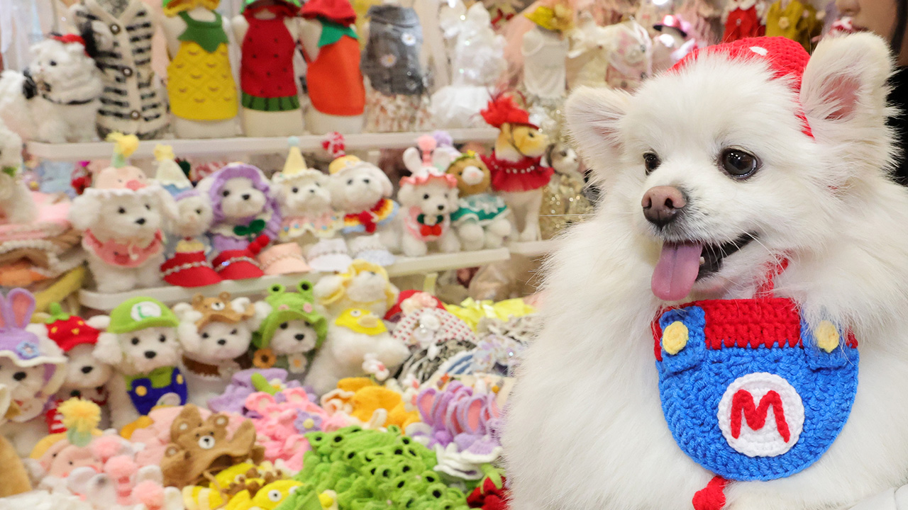 ▲ 지난해 3월 7일 경기 고양시 킨텍스 제2전시장에서 열린 반려동물 용품 박람회 '2025 펫쇼 코리아'에서 견주와 함께 나온 반려견이 패션가게 앞에 서 있다.