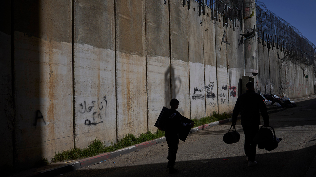 ▲ 서안과 동예루살렘 분리장벽 지나는 팔레스타인인