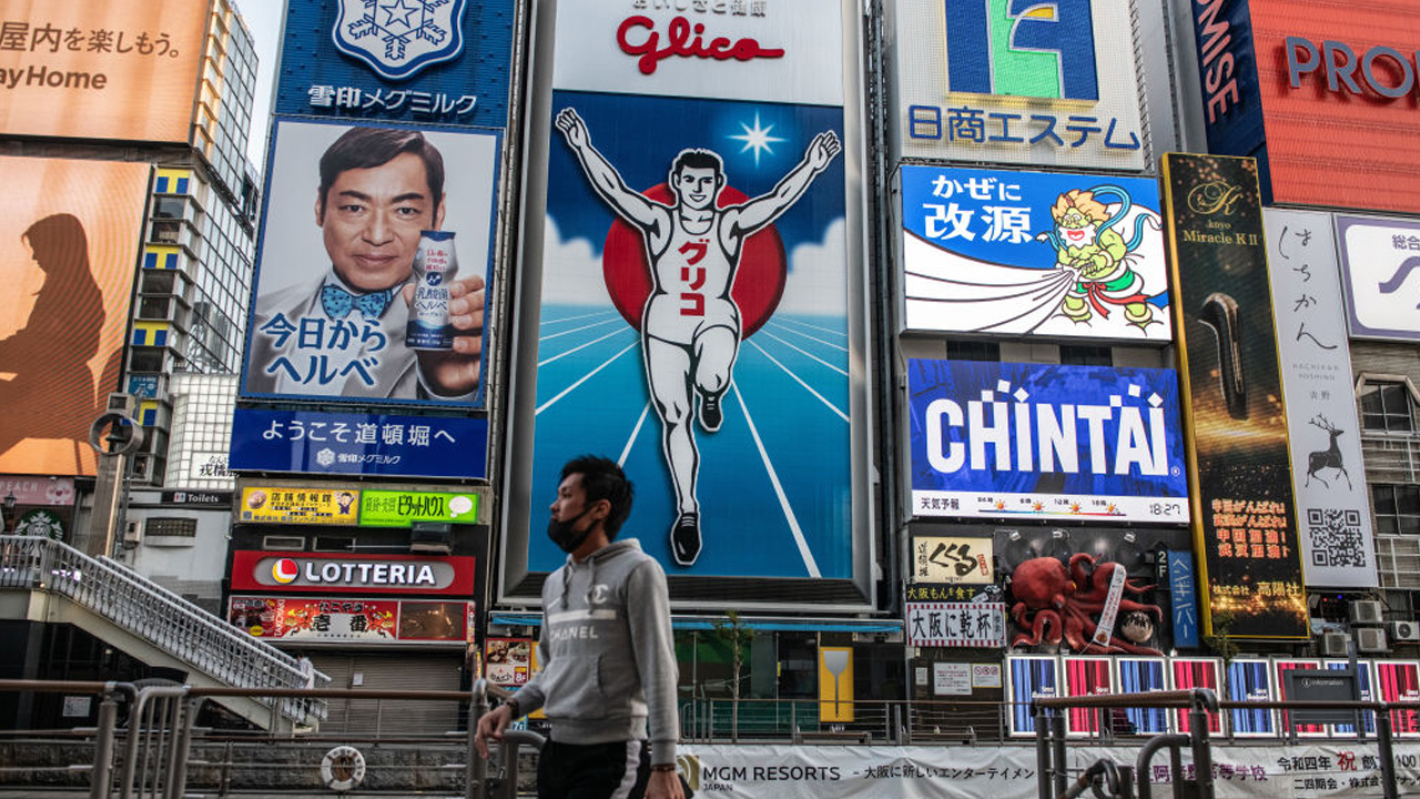 달리는 남성 모습을 담은 제과업체 에자키 글리코의 간판 주변은 오사카를 찾는 관광객들이 기념사진을 찍는 명소로 유명하며 부근에는 갈 곳 없는 불량 청소년들이 모이는 밀집 장소도 있는 것으로 알려졌습니다.