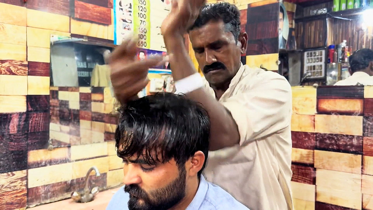인도 뭄바이에서 포착된 전통 방식의 머리 마사지 모습입니다.