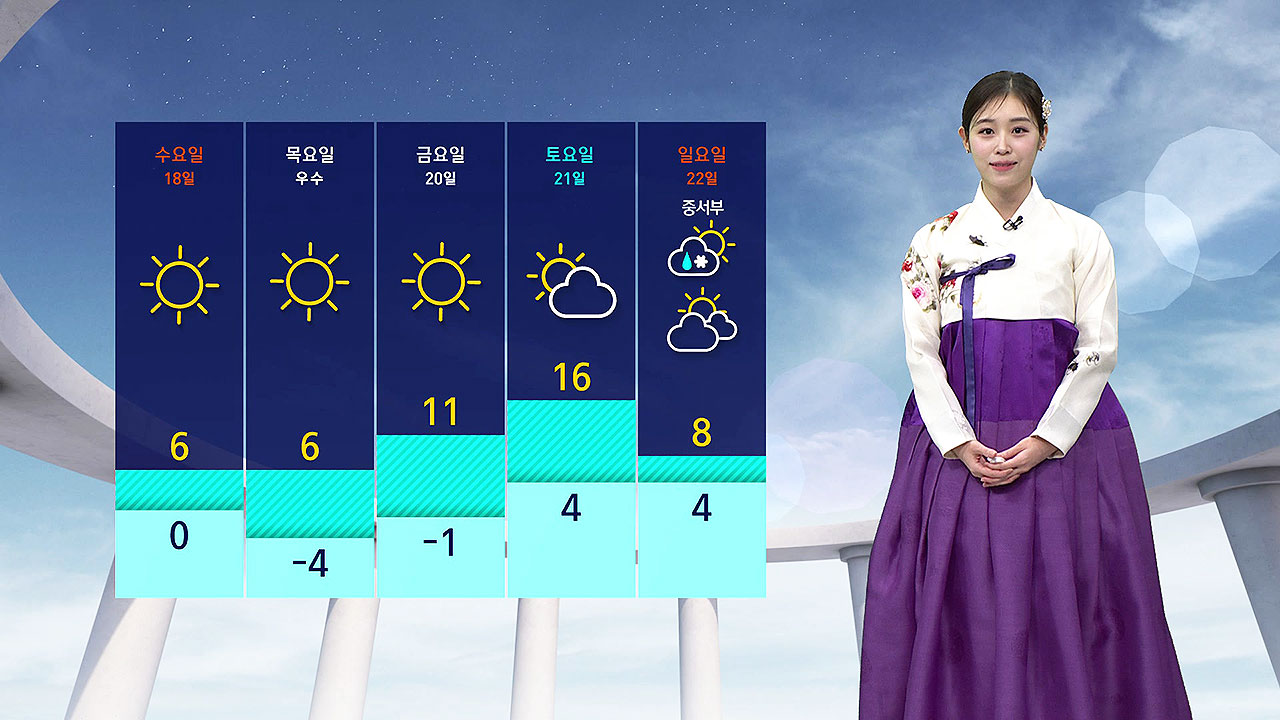 지역별 낮 기온 살펴보시면 전주의 낮 최고 기온 8도, 부산은 13도까지 오르겠고요.