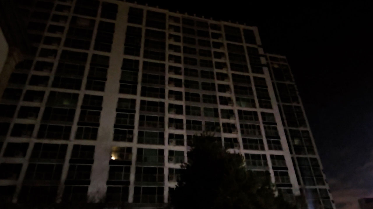 칠흑같은 어둠 속, 아파트 내부에서는 한 줄기 빛도 보이지 않습니다.