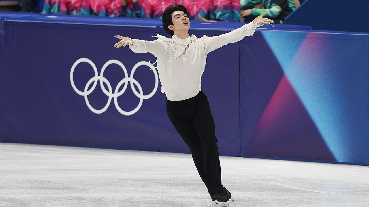 ▲ 현지 시간 13일 이탈리아 밀라노 아이스스케이팅 아레나에서 열린 2026 밀라노·코르티나담페초 동계올림픽 남자 싱글 프리 스케이팅에 출전한 차준환이 연기를 펼치고 있다.