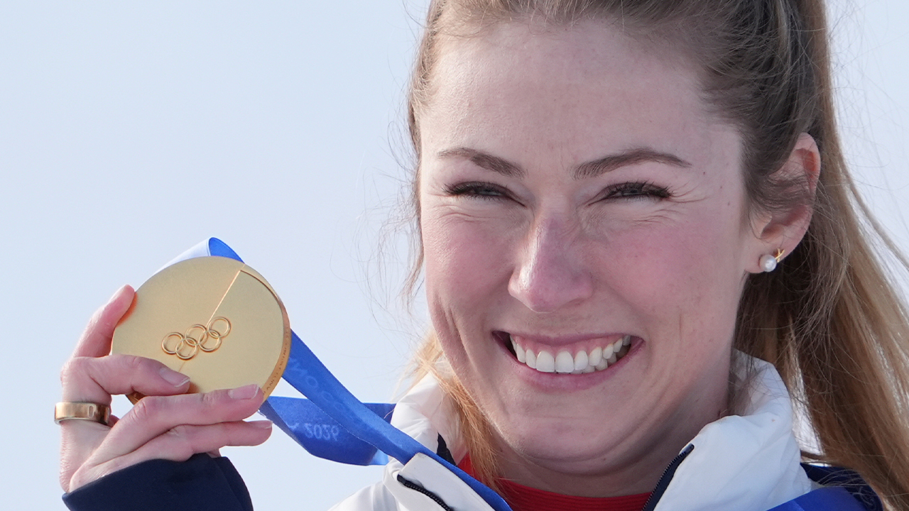 ▲ 금메달을 목에 걸고 기뻐하는 '스키 여제' 미케일라 시프린