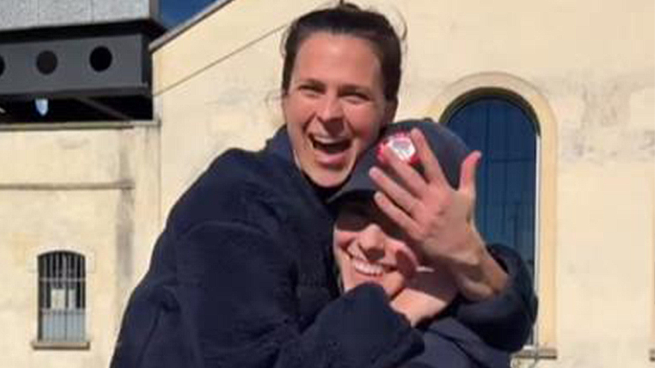 ▲ 동성 커플인 미국 여자 아이스하키 대표팀 주장 힐러리 나이트(오른쪽)와 미국 스피드스케이팅 여자 국가대표 브리트니 보가 2026 밀라노·코르티나담페초 동계 올림픽 현장에서 약혼반지를 끼고 환하게 웃고 있다.