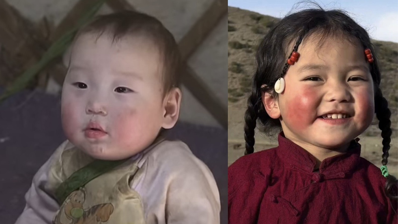 ▲ 볼이 빨개진 몽골 아기들