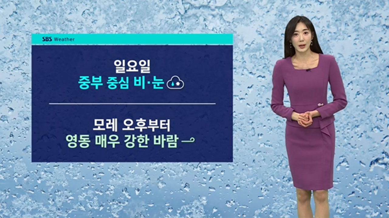 일요일 중부를 중심으로 비나 눈이 오겠고요, 이날 바람이 매우 강하게 불겠습니다.