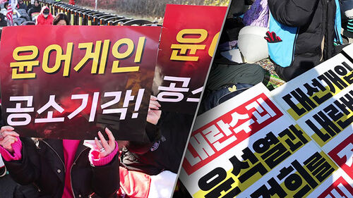보수단체 집회와 1~200m가량 떨어진 서초역 인근에서는 윤 전 대통령에 대해 엄벌을 촉구하는 진보단체 집회도 열렸습니다.