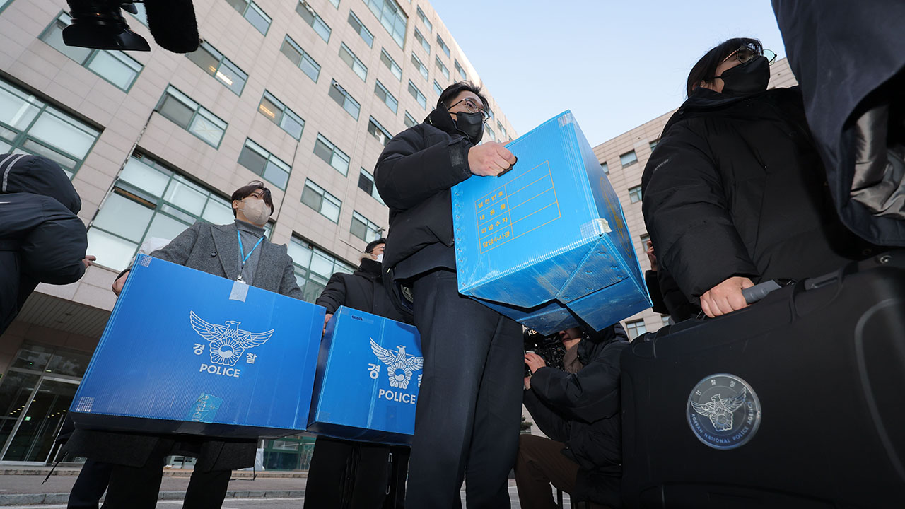 ▲ 북한의 한국 무인기 침투 주장에 대한 진상을 규명하는 '군경합동조사 TF'가 지난달 21일 민간인 피의자 3명의 주거지 및 사무실 등에 대한 압수수색에 나선 가운데 이날 피의자 장 모 씨와 오 모 씨가 다니던 서울의 한 대학교 공대 건물에서 경찰 관계자들이 압수품을 옮기고 있다.
