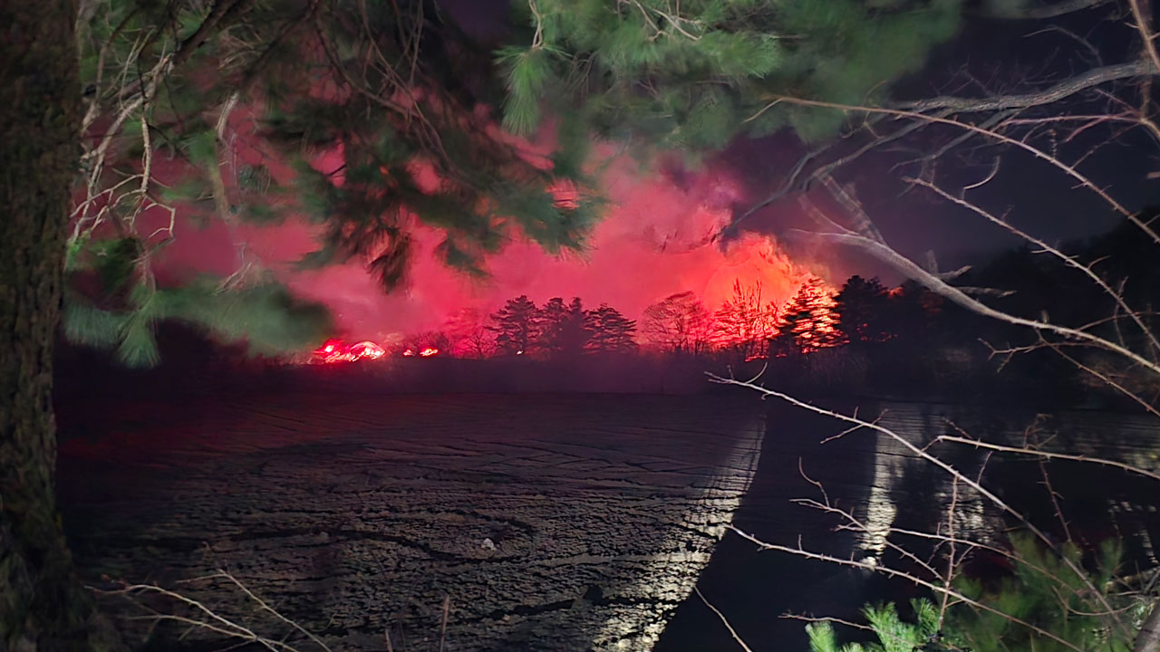 ▲ 22일 오후 7시 22분께 강원 고성군 토성면 인흥리에서 산불이 나 불길이 번지고 있다.