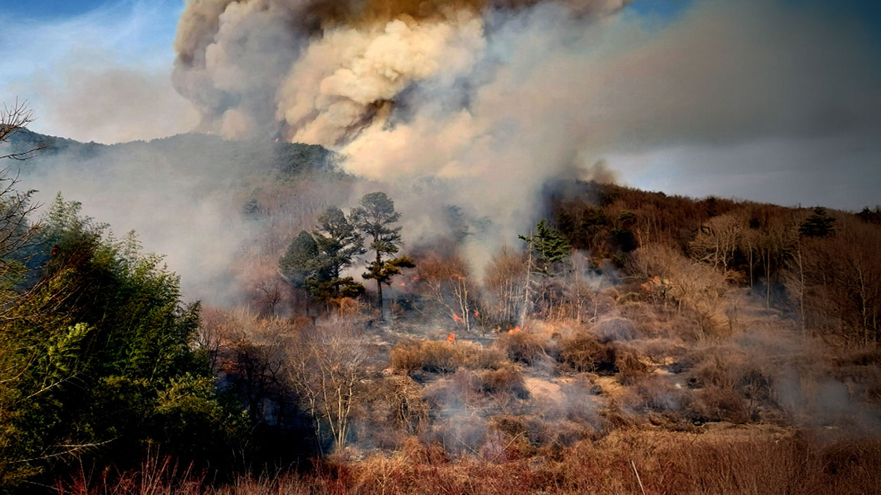 전국적인 산불 상황 알아보겠습니다. 건조한 날씨에 바람까지 강하게 불면서 오늘(23일) 하루에만 전국 9곳에서 산불이 났습니다. 오후 늦게 경남 밀양에서 난 산불이 확산하면서 국가소방동원령이 내려졌습니다.