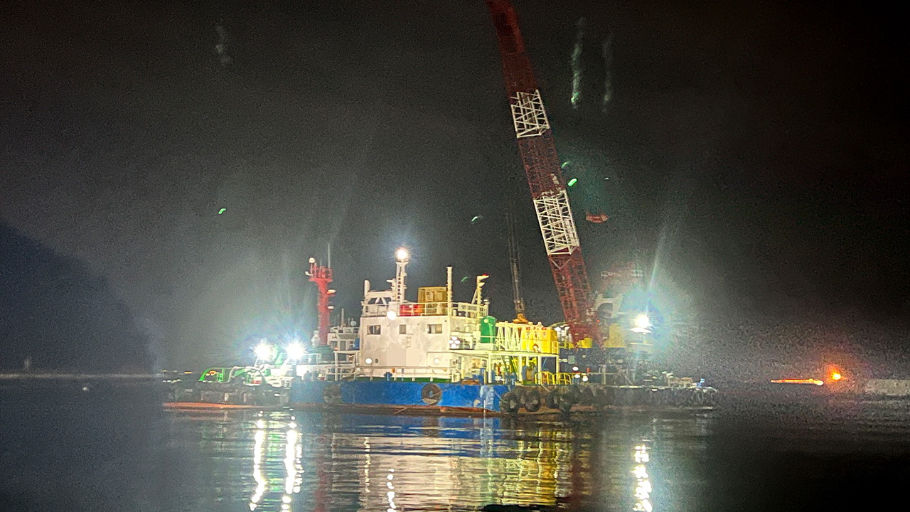 ▲ 창원 해상서 크레인 선박이 고압선 충격