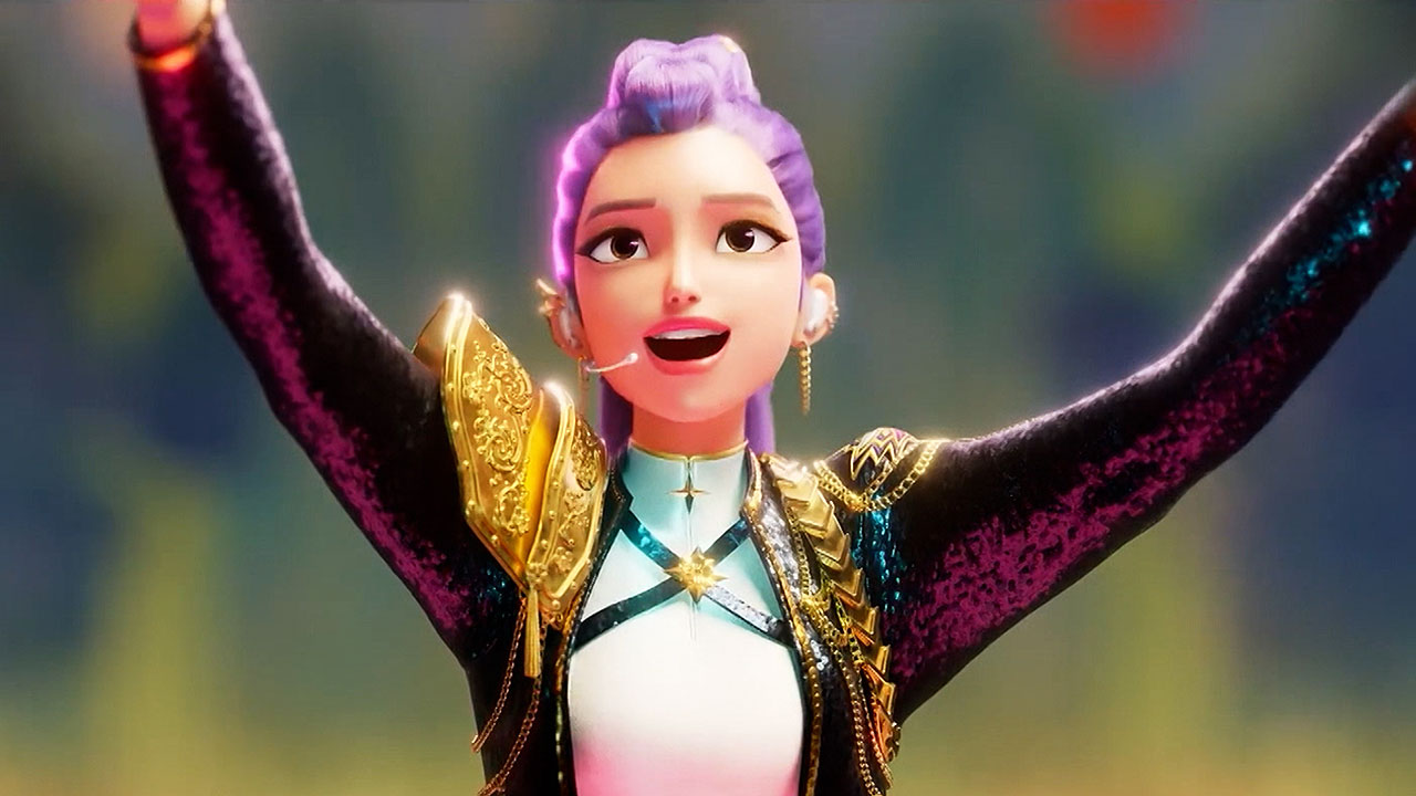 영화 속 걸그룹 헌트릭스의 멤버 루미의 목소리를 연기한 아덴 조는 최우수 성우 연기상을 받았습니다.