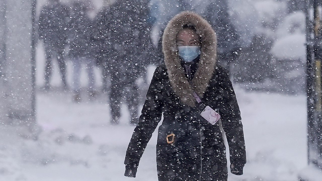 ▲ 사람들이 눈보라가 치는 뉴욕 거리를 걸어가고 있다.